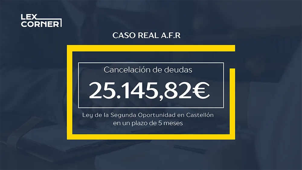 En Lex Corner, somos especialistas en la «Ley de la Segunda Oportunidad en Castellón». Nos distinguimos por el número de casos de éxito con más de 20 años de experiencia. En los que hemos ayudado a particulares, autónomos a recuperarse financieramente y que nunca habrían podido rehacer su vida.